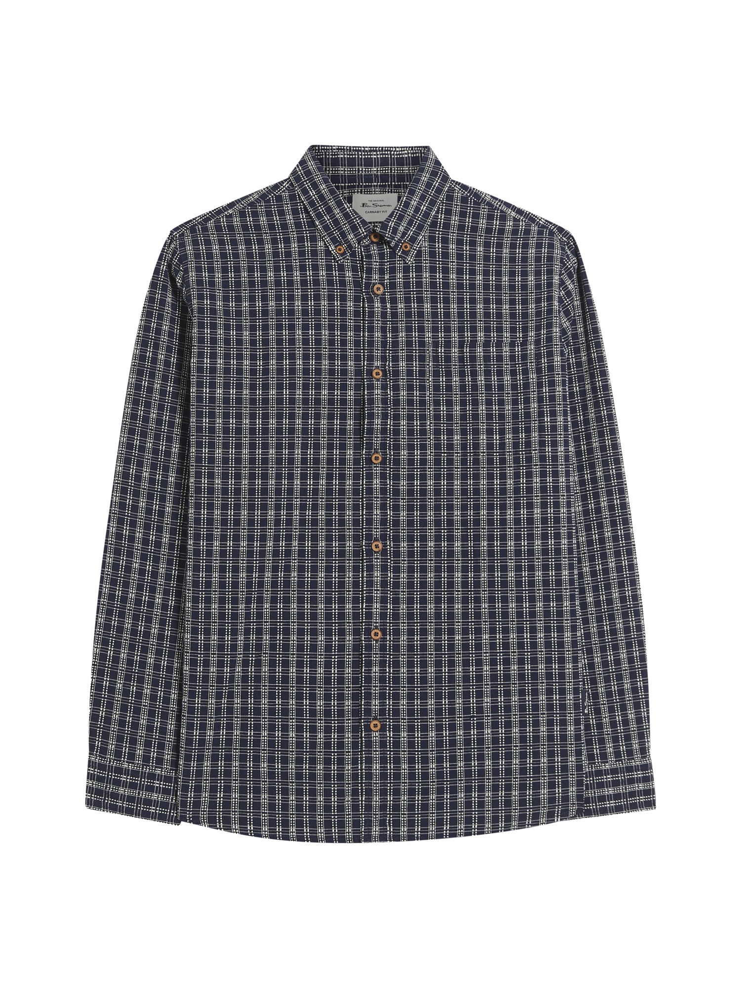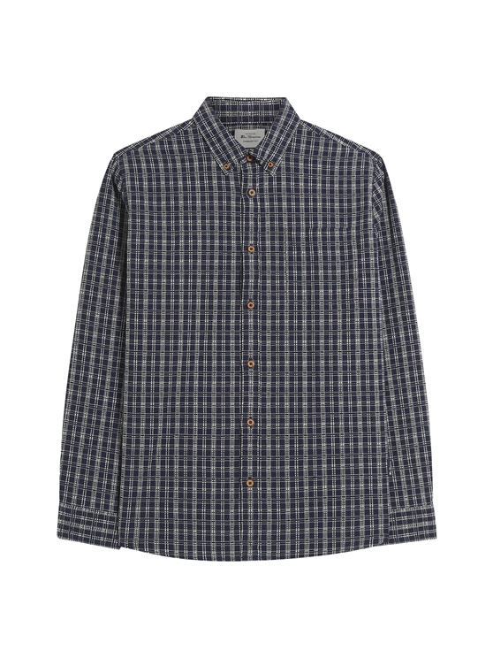This long sleeve raised yarn check shirt features a curved hem and a two finger button down collar. Made from 100% cotton, this classic fit shirt is completed with a Ben Sherman branded woven label at the chest pocket.