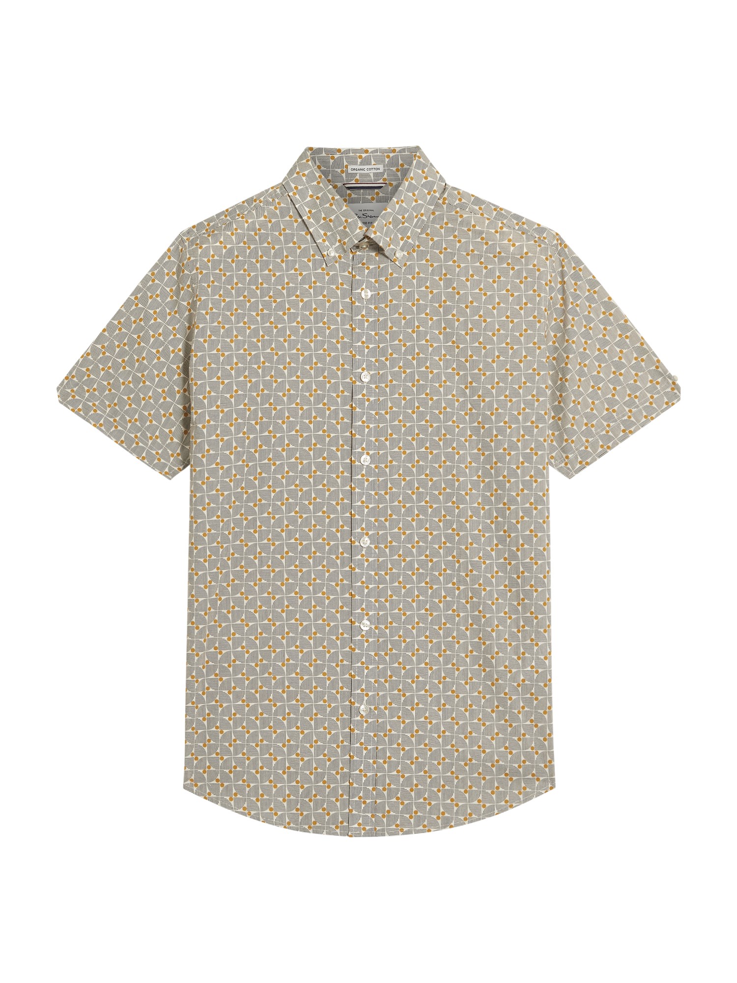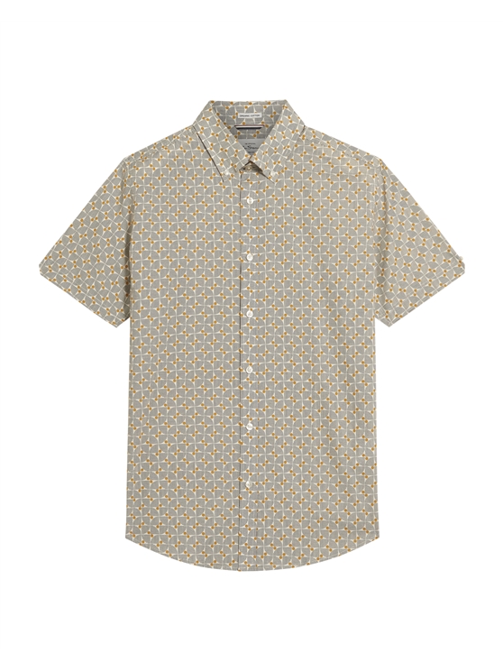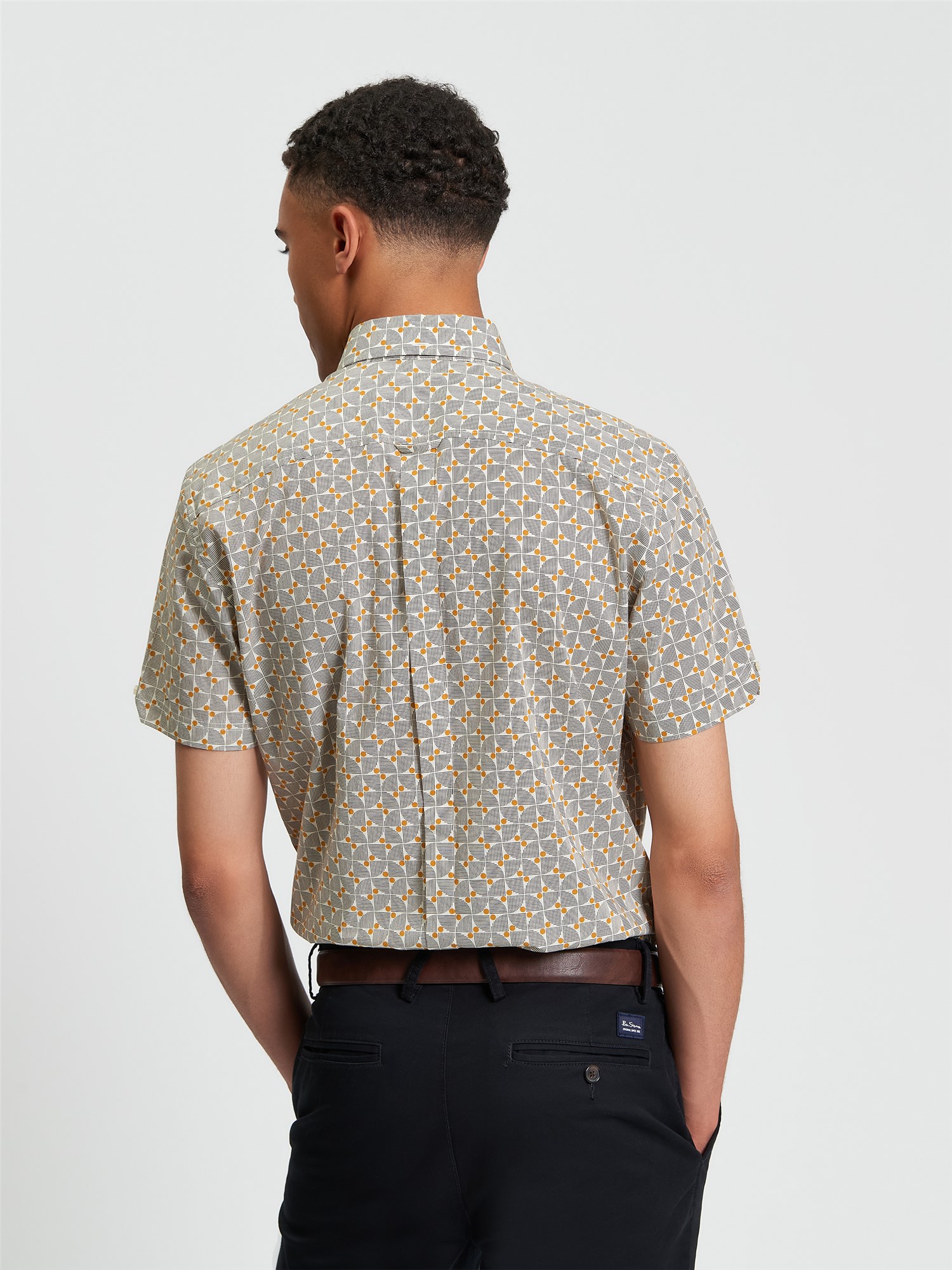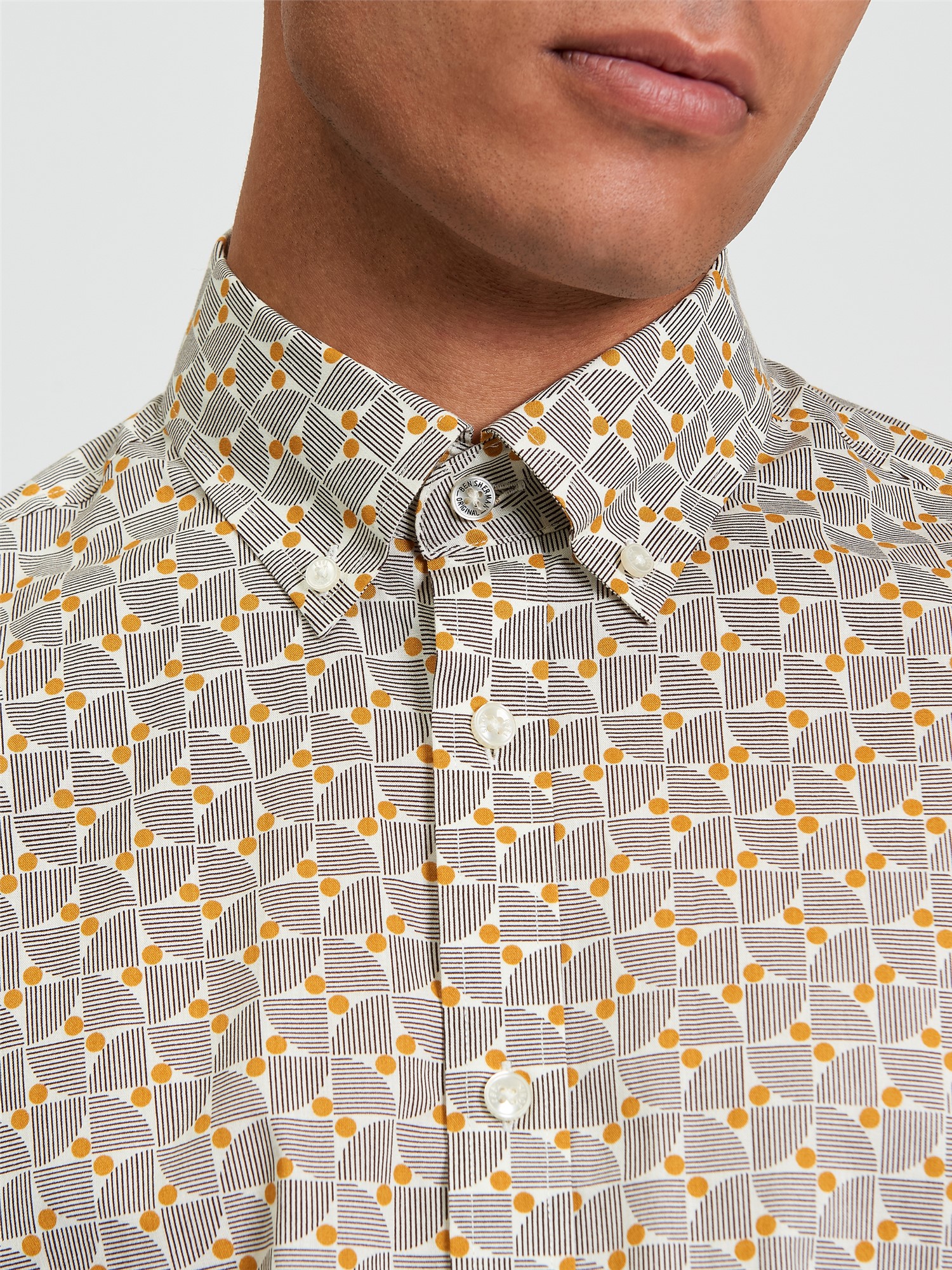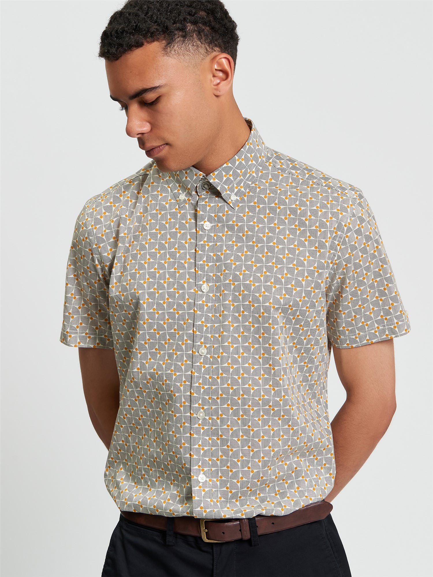 This long sleeve split geo print shirt features a curved hem and a two finger button down collar. Made from 100% cotton, this regular fit shirt is completed with a Ben Sherman branded woven label on the side seam