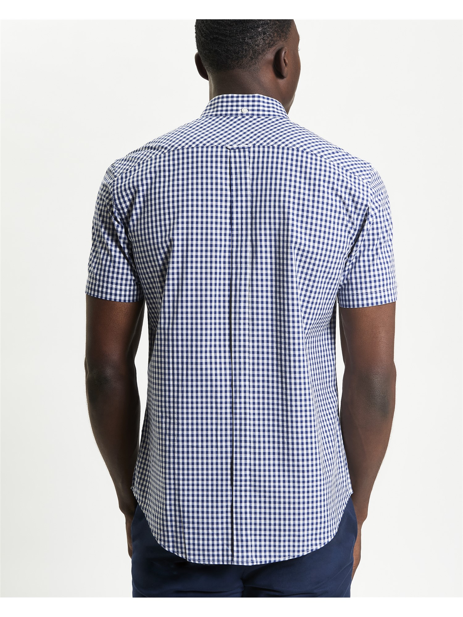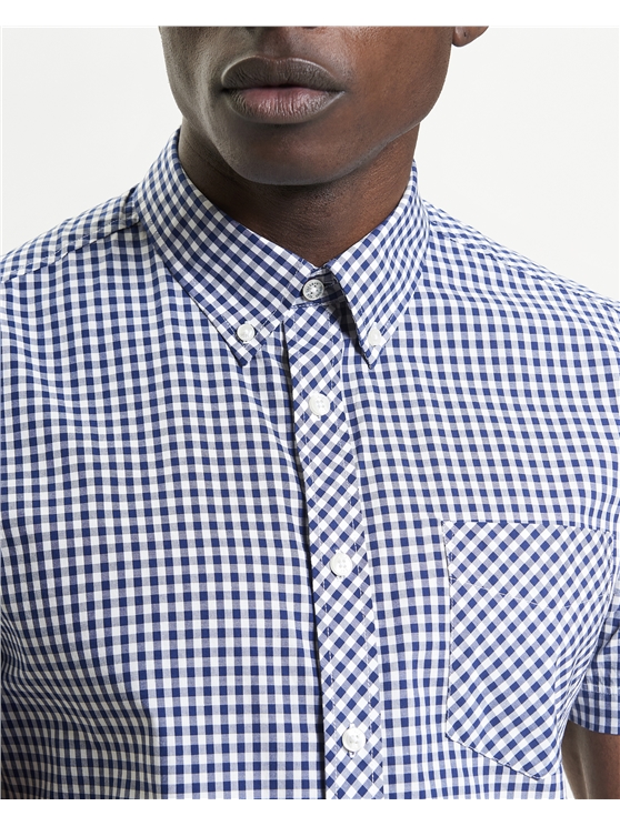 Our signature short sleeve gingham shirt features a two finger button down collar and a Ben Sherman branded woven label at the chest pocket. This regular fit style is finished with a back box pleat for comfort. Made from 100% organic cotton