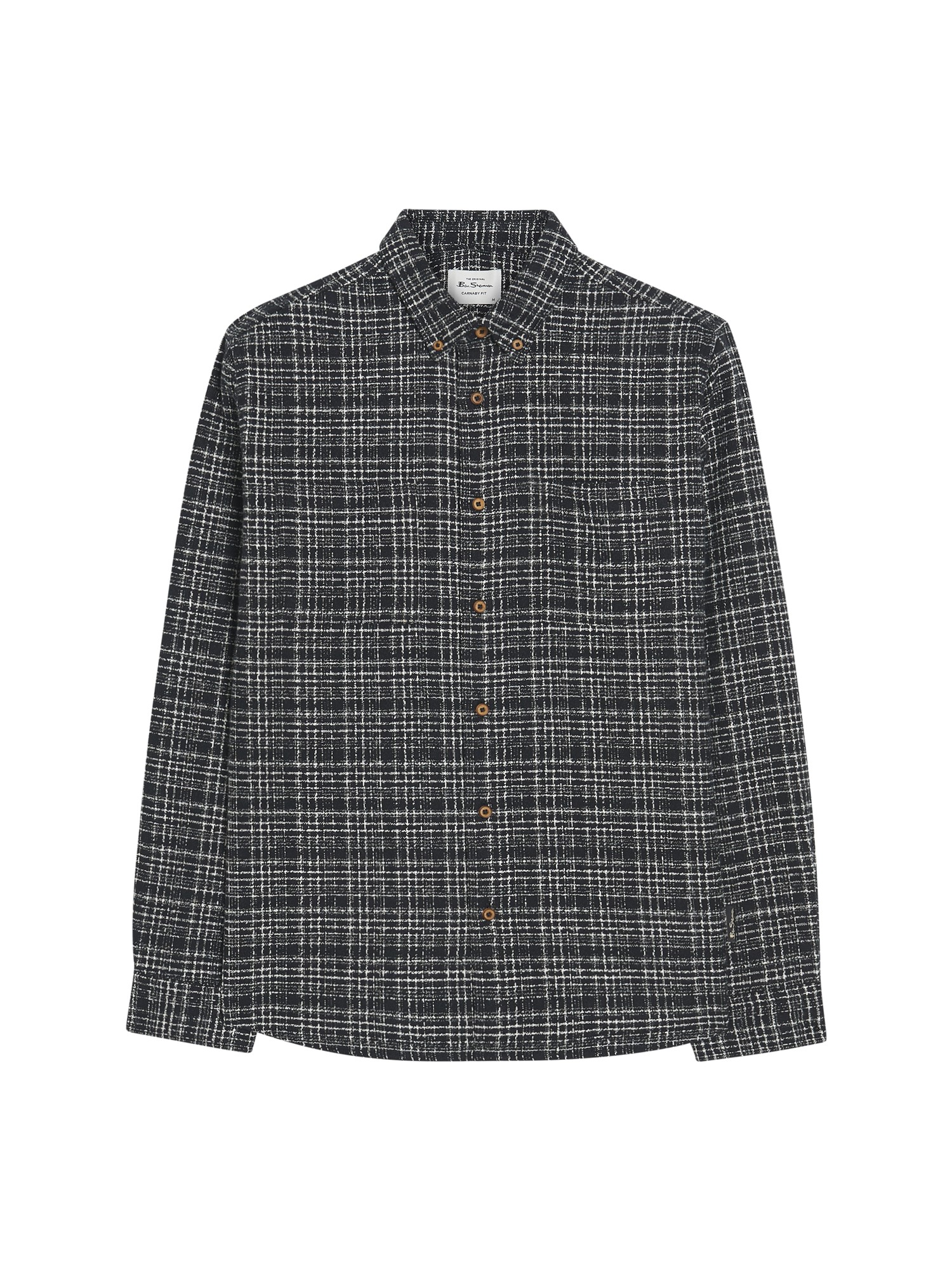 Made from 100% cotton, this long sleeve twisted yarn shirt includes a two finger button down collar and a Ben Sherman branded woven label at the chest pocket. A classic fit featuring a curved hem.