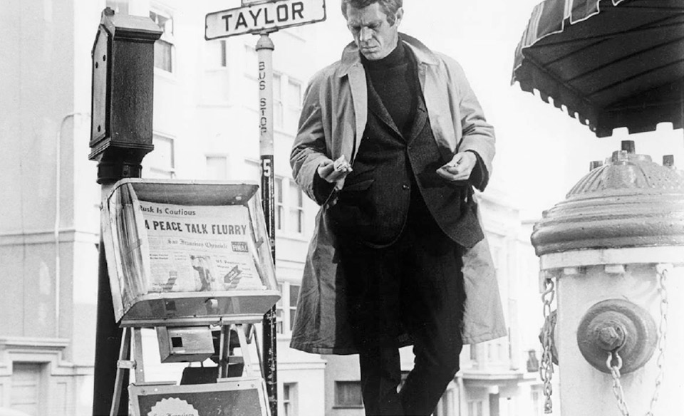If you’re still in need of a bit of inspiration then look no further. Our celluloid selection will help you cover the cold-weather staples properly. From Daniel Craig’s double-breasted funeral coat in Spectre to Steve McQueen as Frank Bullitt, we call out the classics.